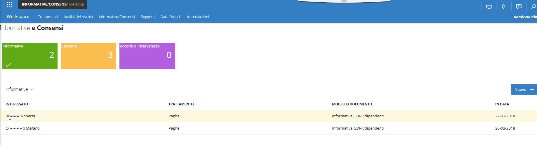 Per i diversi tipi di documenti previsti dal GDPR (informative, consensi, incarichi…) esistono template precaricati, che sarà sempre comunque possibile personalizzare con la stessa semplicità di una videoscrittura.