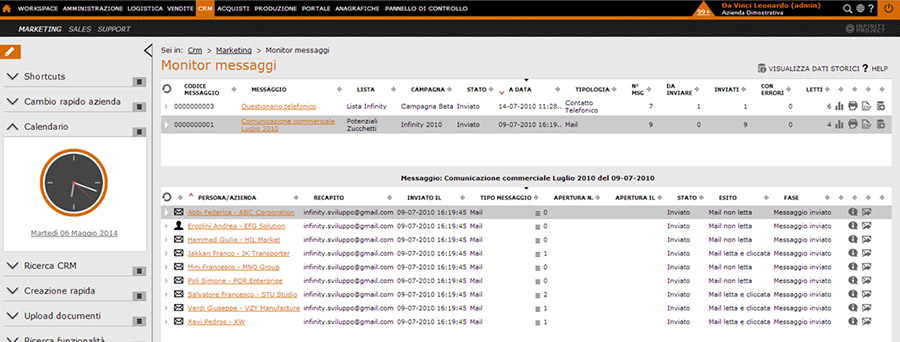 Infinity CRM (Customer Relationship Management) Prevendita è il software CRM ideale per governare tutte le informazioni legate ai contatti e alle opportunità commerciali che coinvolgono il marketing e le vendite.